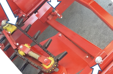 Для того чтобы отрегулировать интенсивность колебаний молоточков вибротранспортера или натянуть транспортер стеблей достаточно открутить одну гайку и откинуть вверх вибротранспортер и лифтер на что требуется 1-2 минуты.