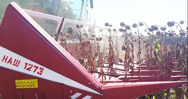 Жатки рядковые марки НАШ предназначены для уборки подсолнечника при влажности 12-20 % и влажности корзинок 50-68 %, во всех зонах его возделывания, различных сортов как рядкового, так и без рядкового посева. Одинаково эффективно работают как при уборке высокорослых, так и низкорослых сортов. Вибрационный транспортер обеспечивает устойчивый поток корзинок и подачу семян в желоб шнека.